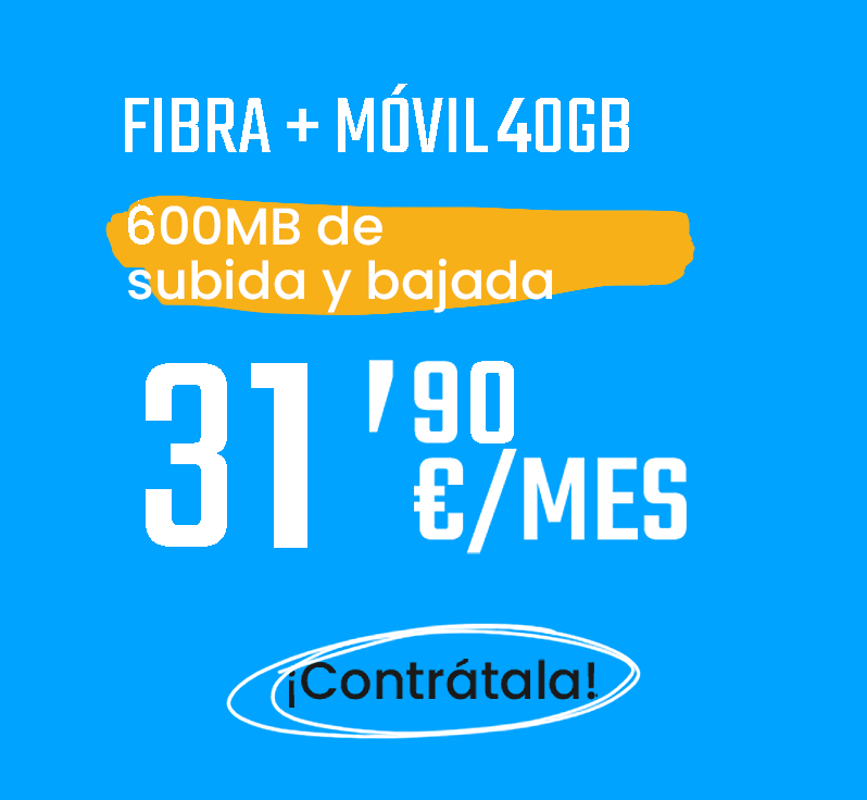 1000 MB de Fibra Simétrica y Móvil con 80GB acumulables y llamadas ilimitadas. Alta e instalación gratis, router wifi 6 y roaming internacional.